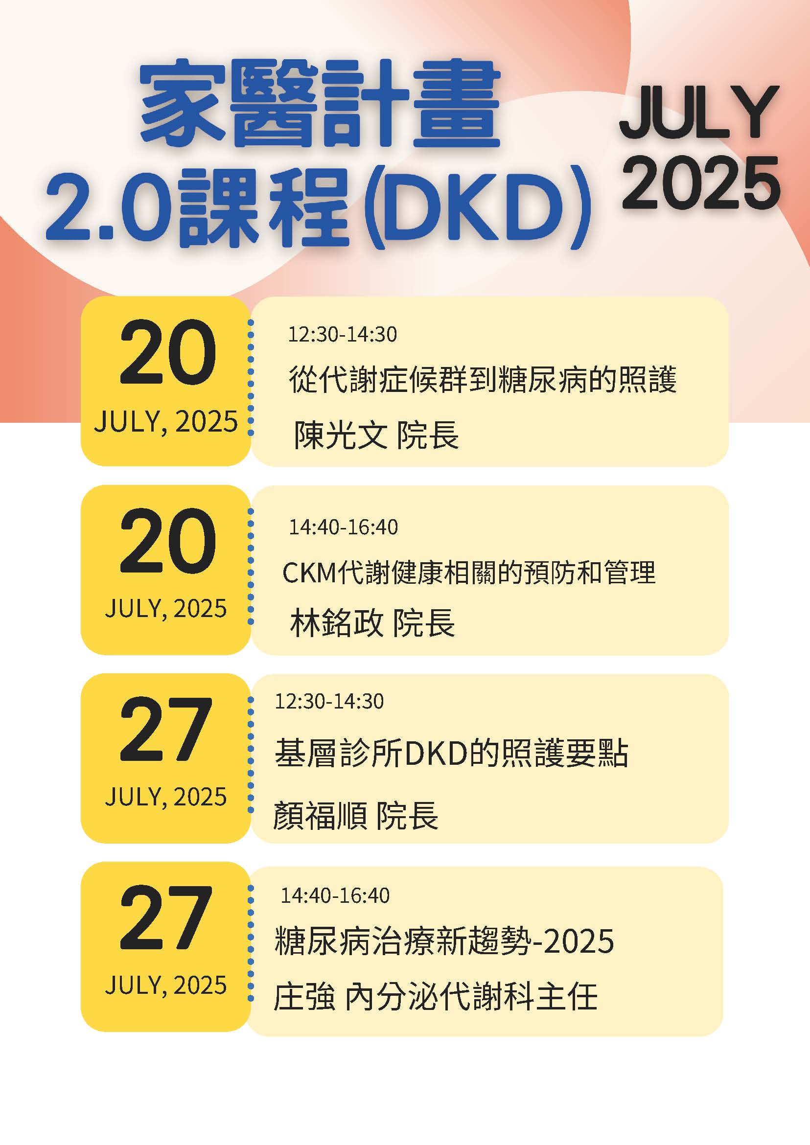 桃園市醫師公會:2025家醫計劃2.0(D M、DKD)學術活動-第2場